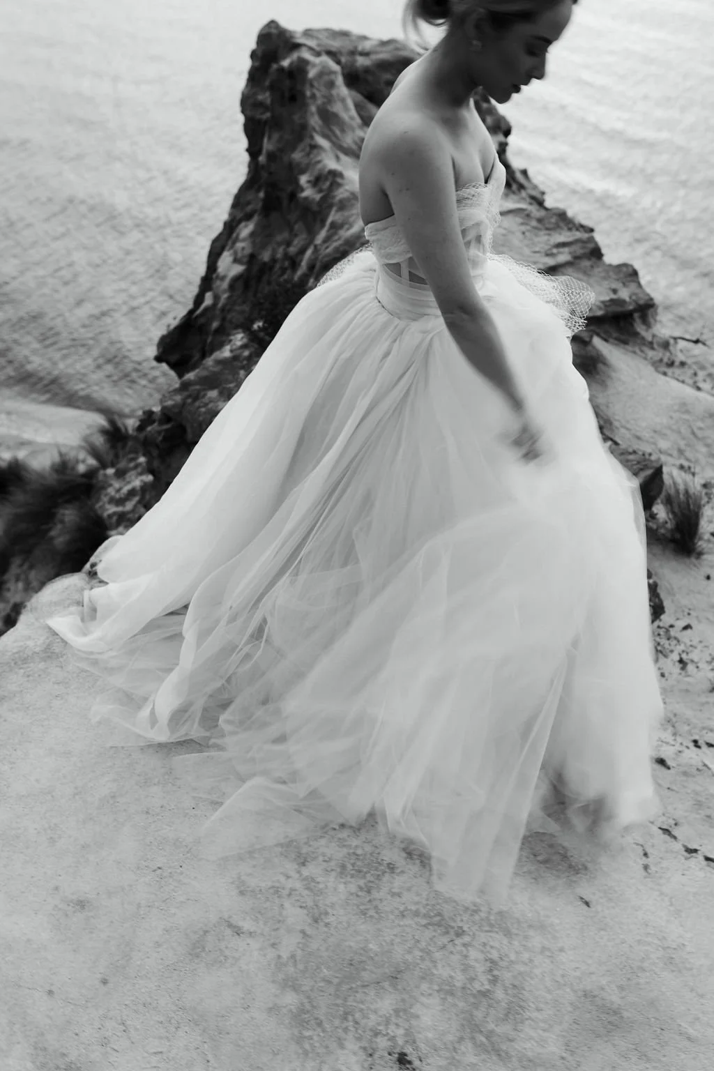 There seems to be a pattern here, but the minute restrictions were lifted, we planned for a shoot and road trip to the Mornington. Together with the lovely Brooke and Holly Butler’s Daisy design in tow, we sought after the perfect cliff edge shoot.